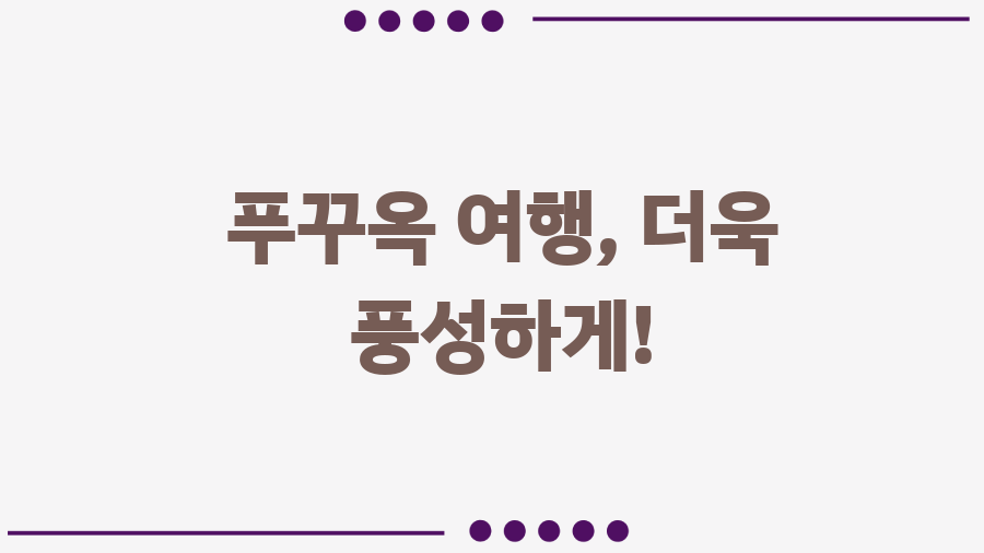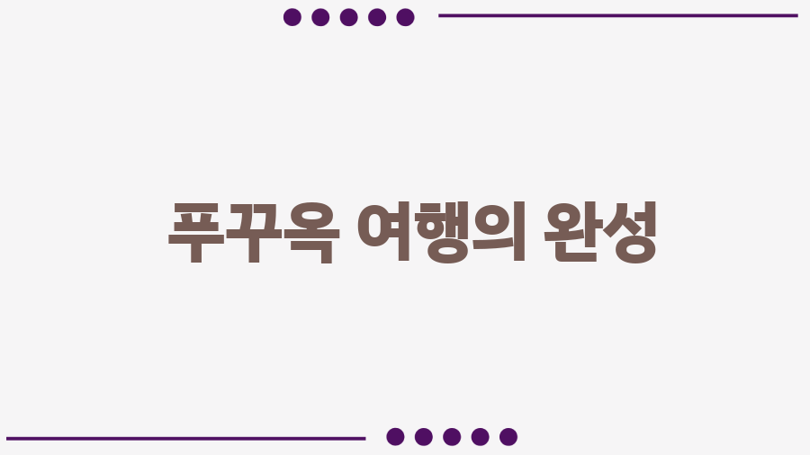 오늘 알아본 내용 어떠셨나요? 푸꾸옥 유심 선택 가이드가 여러분의 푸꾸옥 여행을 더욱 풍성하게 만들어주길 바랍니다! 다양한 정보를 바탕으로 자신에게 맞는 유심을 선택하고, 끊김 없는 데이터와 편리한 통신으로 푸꾸옥 여행을 만끽하세요.