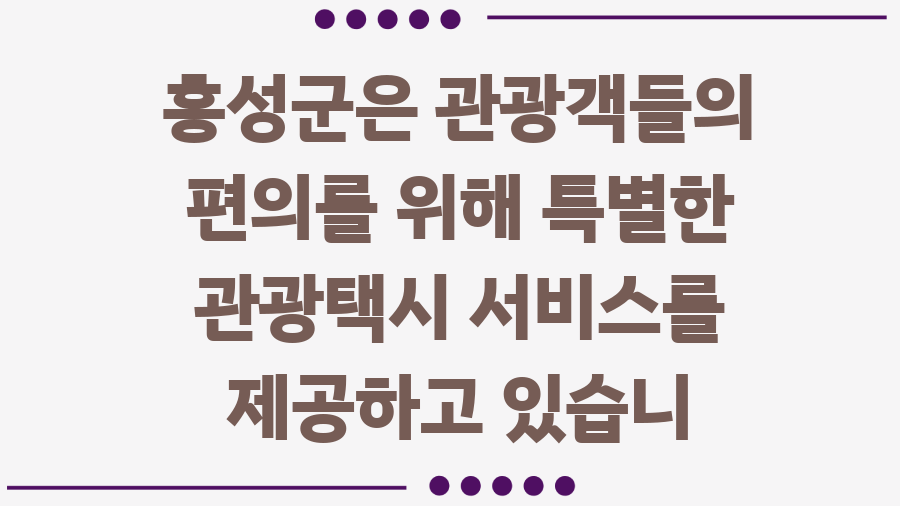 홍성군은 관광객들의 편의를 위해 특별한 관광택시 서비스를 제공하고 있습니다.