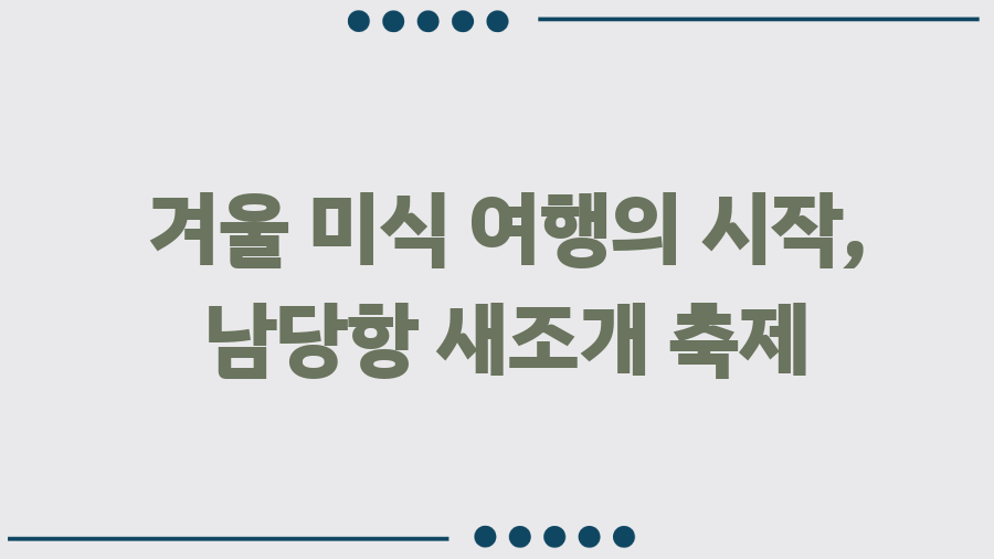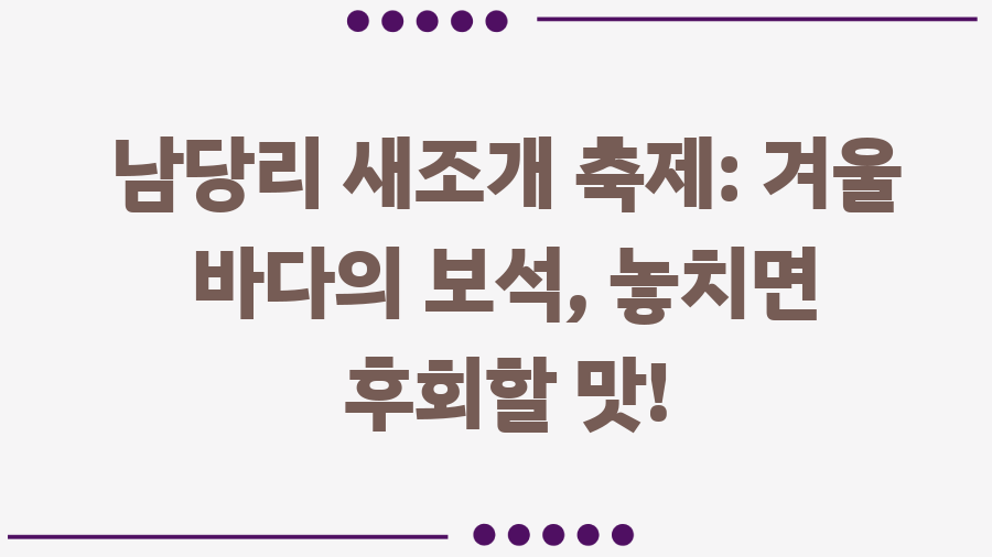 오늘은 남당리 새조개 축제에 대한 모든 것을 파헤쳐 보겠습니다.