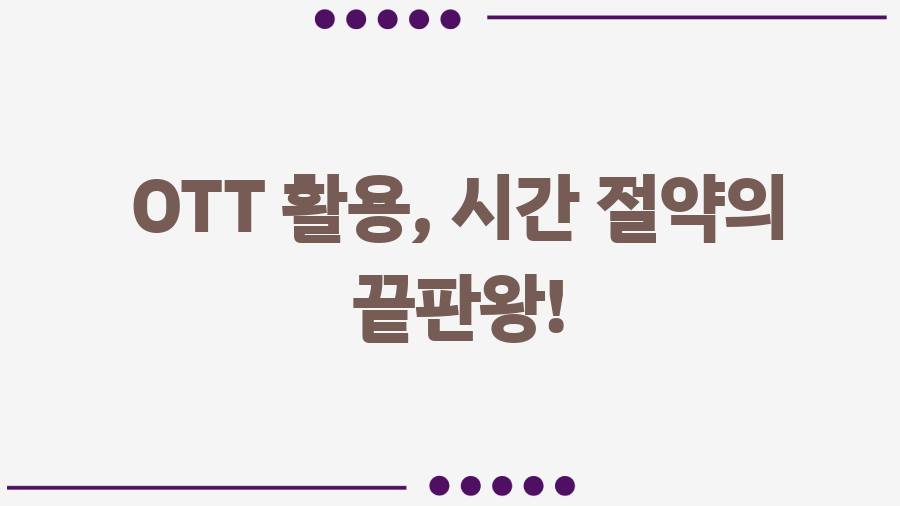 단순한 오락 플랫폼을 넘어, 다양한 분야의 전문가 강의부터 최신 기술 동향까지, OTT는 무궁무진한 정보의 보고이자 여러분의 시간을 아껴주는 효율적인 도구인 셈입니다. 이처럼 시간 효율성을 높이는 OTT 활용은 개인의 생산성 향상에 직결되며, 최근 직장인 사이에서 '워라밸'을 중요시하는 추세와도 맥을 같이 합니다. 시간 부족으로 고민하는 여러분이라면, 지금부터 제가 알려드리는 팁들을 참고해서 OTT를 업무에 활용해 보세요.