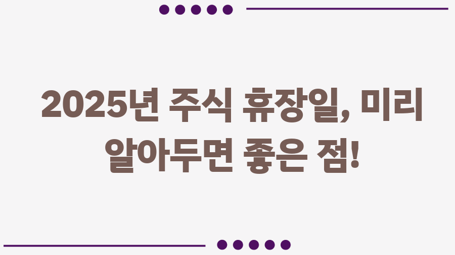 2025년 주식 휴장일, 미리 알아두면 좋은 점!