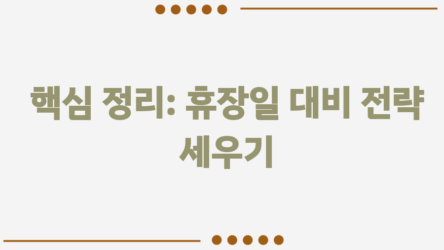2025년 주식 휴장일을 효과적으로 대비하기 위해서는 미리 휴장일을 확인하고, 거래 계획을 미리 수정하는 것이 중요합니다. 휴장일 전후 주가 변동을 예측하고, 리스크 관리 계획을 수립하여 급격한 변동에 대비해야 합니다.