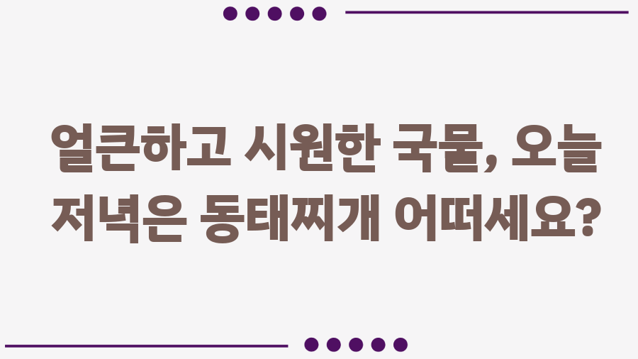 오늘 저녁, 따끈한 동태찌개로 온 가족이 행복한 식사를 즐겨보세요!