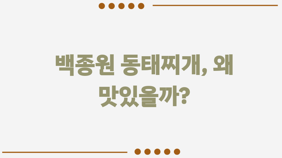 백종원 동태찌개, 더욱 맛있게 즐기는 꿀팁