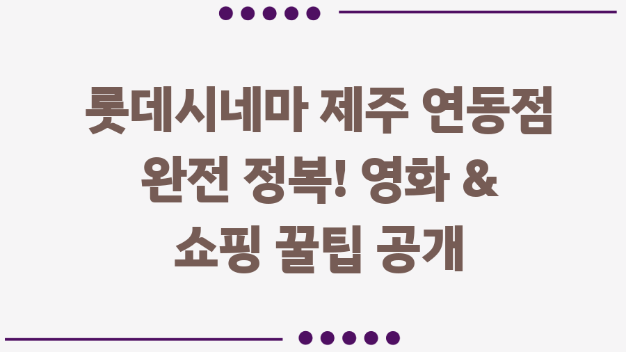 롯데시네마 제주 연동점, 놓치면 후회할 꿀팁 대방출