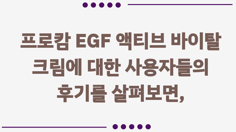 EGF 성분의 효능부터 제품의 특징, 그리고 사용자들의 후기까지 꼼꼼하게 살펴보니, 이 크림이 왜 많은 사람들에게 사랑받는지 조금은 알 것 같습니다.