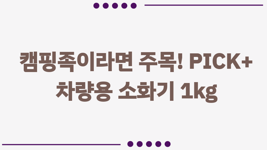 캠핑을 즐겨 하시는 분들에게는 PICK+ 차량용 소화기 1kg이 제격입니다. 캠핑, 가정, 자동차 겸용으로 사용 가능하며, 38,000원에 구매할 수 있습니다. 캠핑장에서 발생할 수 있는 화재에도 대비할 수 있어 더욱 안심입니다.