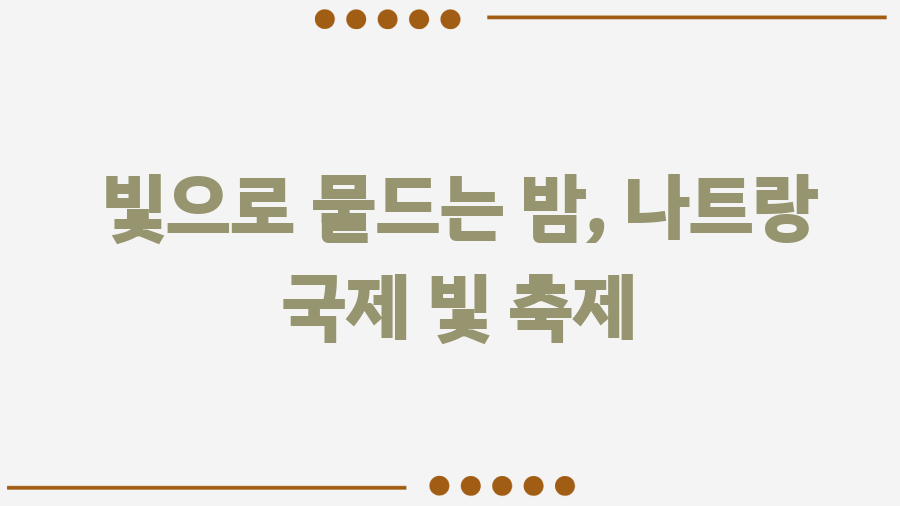2024년에 처음 개최된 나트랑 국제 빛 축제는 현대적인 빛 예술과 나트랑의 문화 유산이 조화를 이루는 특별한 축제입니다.