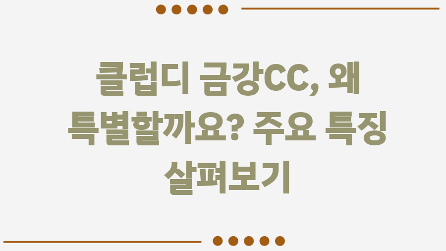 클럽디 금강CC, 왜 특별할까요? 주요 특징 살펴보기