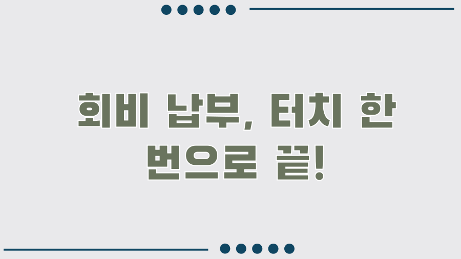 매번 계좌번호를 입력하고 이체하는 번거로움 없이, 터치 한 번으로 회비 납부가 완료되니, 얼마나 편리할까요?