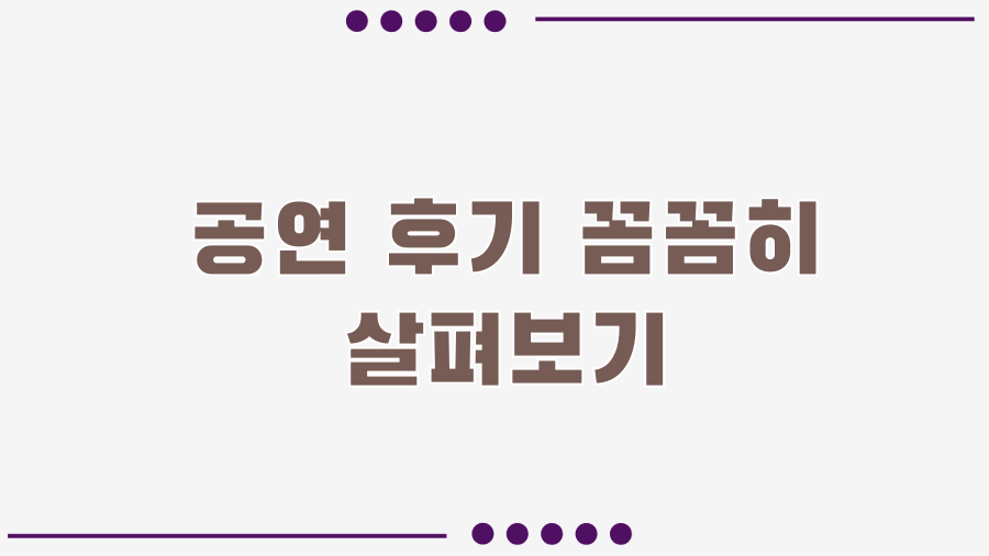 각 좌석에서 느꼈던 장단점, 시야 방해 요소, 음향 상태 등 생생한 정보를 얻을 수 있습니다.