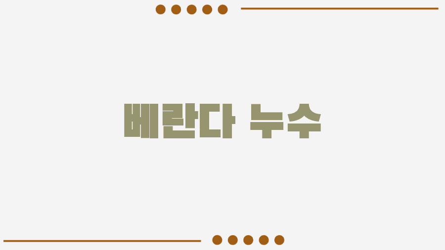 베란다 누수는 방수층의 노후화나 파손, 혹은 창틀 주변의 실리콘 노후로 인해 발생하는 경우가 많습니다. 특히 오래된 아파트나 주택에서 자주 발생하는 문제입니다. 베란다 바닥이나 벽면의 방수층을 새로 시공하는 것이 가장 확실한 해결책입니다. 또한, 베란다 창틀 주변의 실리콘이 오래되어 갈라지거나 들떠 있다면, 이 부분을 재시공하여 빗물이 내부로 유입되는 것을 막아야 합니다. 경우에 따라서는 베란다 배수구의 막힘이나 역류도 누수의 원인이 될 수 있으므로, 배수구 청소도 함께 고려해 볼 수 있습니다.