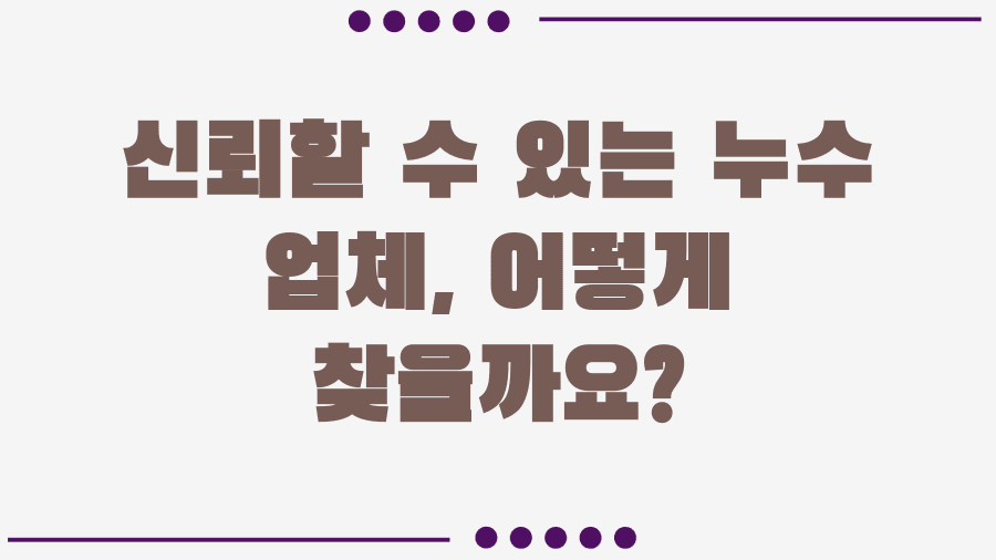 신뢰할 수 있는 누수 업체, 어떻게 찾을까요?