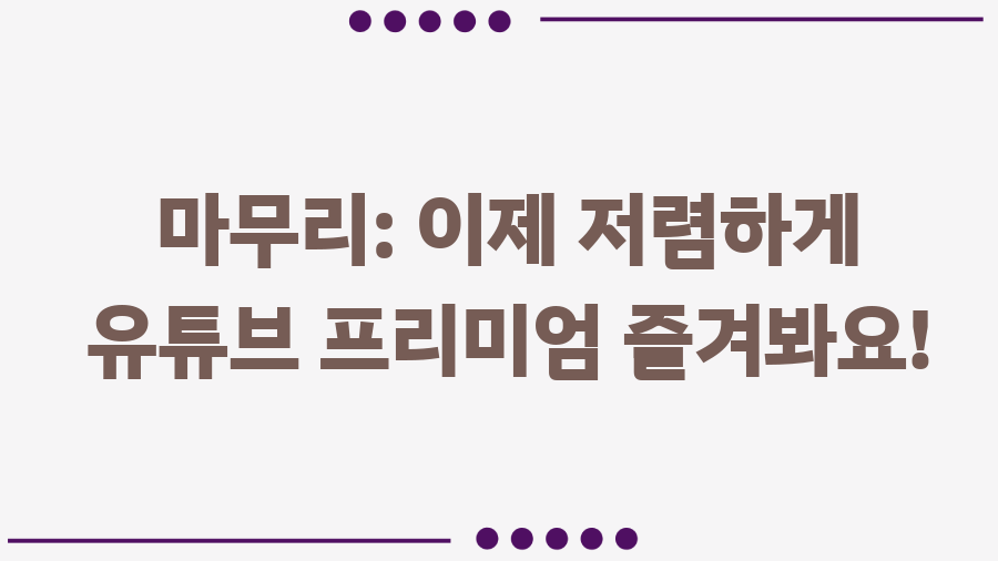 요즘 유튜브 프리미엄 없이 유튜브 보는 건 상상도 못 하시죠? 광고 없는 쾌적한 시청 경험은 물론, 배경 재생, 오프라인 다운로드까지! 하지만 매달 나가는 프리미엄 요금이 부담스러운 분들 많으실 겁니다.