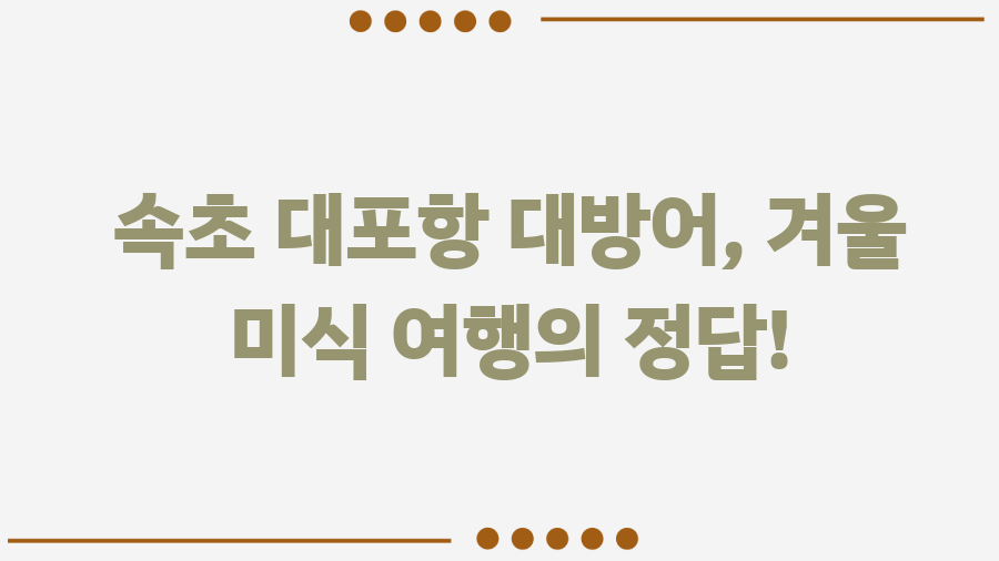 속초 대포항에서 겨울 제철 대방어를 맛보는 것만큼 짜릿한 경험이 있을까요? 차가운 바닷바람을 맞으며 싱싱한 대방어회를 맛보는 상상만으로도 입 안 가득 침이 고입니다. 이번 포스팅에서는 속초 대포항 대방어의 매력부터 맛집 정보, 그리고 주의해야 할 점까지, 알찬 정보를 가득 담아 여러분의 속초 여행을 더욱 풍성하게 만들어 드리겠습니다. 특히, 최근 대방어 인기와 함께 늘어나는 관광객들 사이에서 발생하는 소비자들의 경험을 함께 살펴보며, 현명한 속초 대방어 여행을 위한 팁들을 제공할 예정입니다.