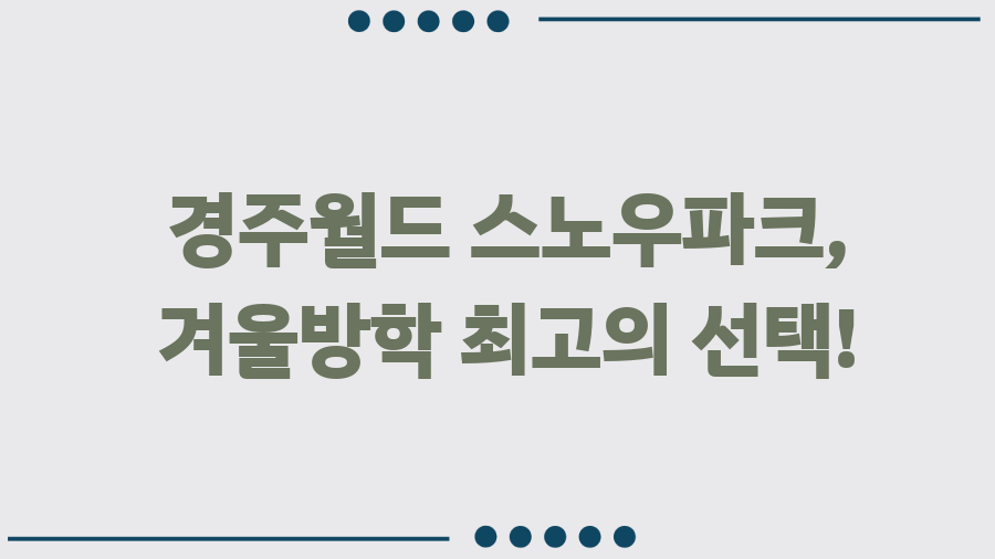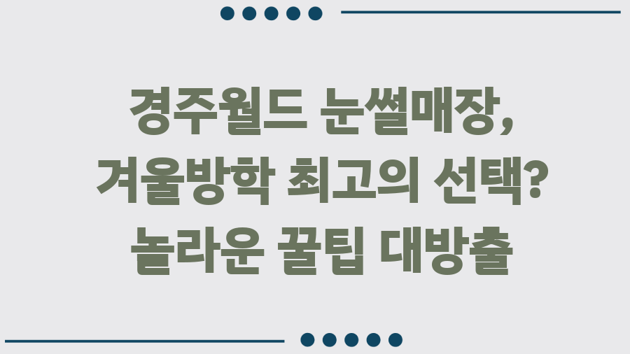 겨울방학 계획에 경주월드 스노우파크를 포함시켜보세요. 후회하지 않으실 겁니다! 가족과 함께 행복한 겨울 추억을 만들어보세요. 블로그 구독과 다른 게시글도 방문해주세요! 더욱 다양하고 유익한 정보를 제공해 드리겠습니다.
