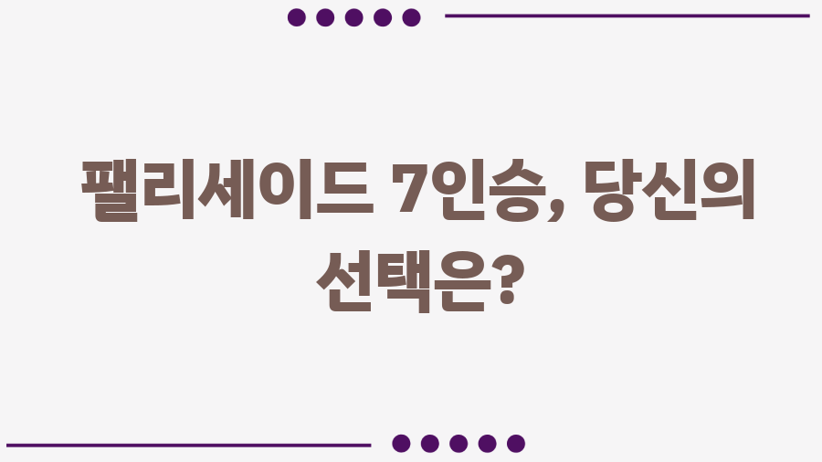 오늘 알아본 내용 어떠셨나요? 신형 팰리세이드 7인승은 넓은 공간, 고급스러운 디자인, 그리고 최첨단 기술이 완벽하게 조화된 매력적인 모델입니다. 이 글이 여러분의 차량 선택에 도움이 되셨으면 좋겠네요!
