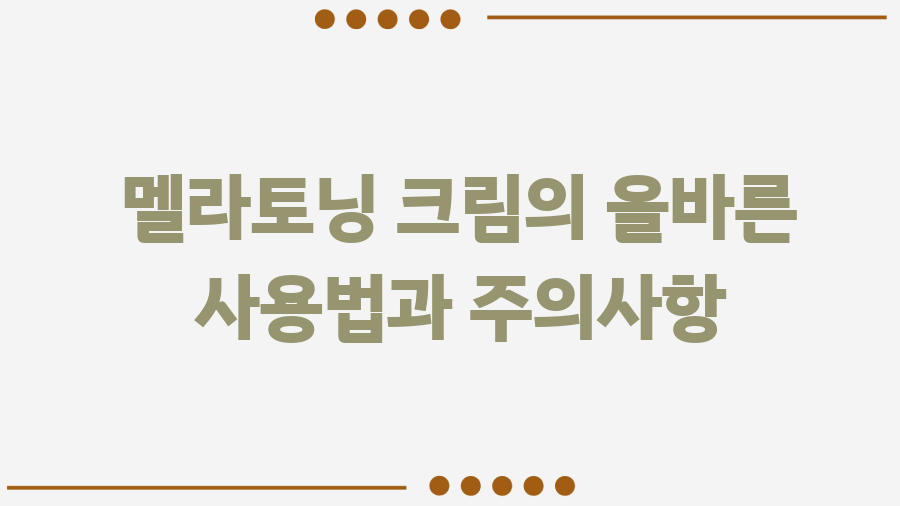 멜라토닝 크림의 올바른 사용법과 주의사항
