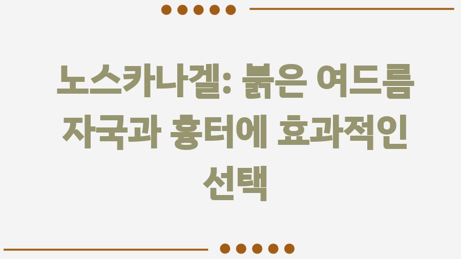 여드름은 청춘의 상징이라고 하지만, 사라진 자리에 남는 흉터는 그리 반갑지 않죠. 붉게 부어오르는 염증부터, 시간이 지나면서 남는 갈색이나 검은색 색소침착까지… 여드름 흔적 때문에 고민이신 분들을 위해 오늘은 멜라토닝 크림과 노스카나겔의 효과적인 사용법에 대해 자세히 알아보겠습니다. 여드름 흉터 때문에 힘드신 분들이라면, 꼭 끝까지 읽어보세요! 여드름 관리의 마지막 단계라고 생각하시면 됩니다.