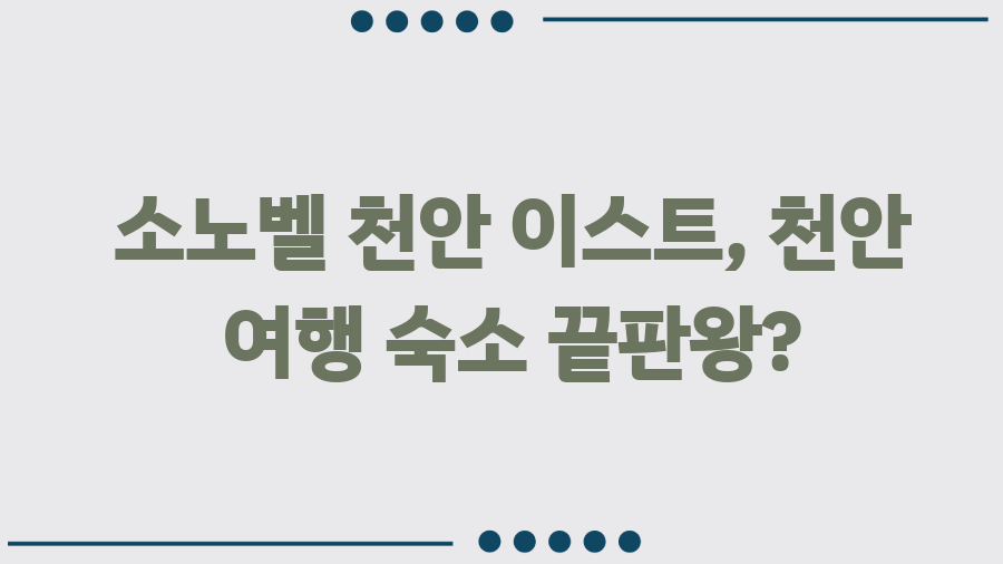 천안 아산 근처에서 가족여행을 계획 중이라면, 혹시 숙소 때문에 고민하고 있지는 않으신가요? 넓은 객실과 다양한 부대시설을 갖춘 곳을 찾고 계신다면, 오늘 소개할 곳에 주목해주세요! 바로 충청남도 천안시에 위치한 소노벨 천안 이스트입니다. 이 글에서는 소노벨 천안 이스트의 매력을 꼼꼼하게 파헤쳐, 여러분의 숙소 선택에 도움을 드리고자 합니다. 천안 여행의 완벽한 시작을 위한 모든 정보, 지금 바로 확인해보세요! 소노벨 천안 이스트, 주요 시설 살펴보기소노벨 천안 이스트는 단순한 숙박시설을 넘어, 다양한 즐거움을 제공하는 복합 리조트입니다. 넓고 쾌적한 객실은 물론, 가족 단위 여행객을 위한 다양한 편의시설이 마련되어 있습니다. 아이들이 좋아하는 키즈카페부터 어른들을 위한 피트니스센터까지, 소노벨 천안 ..