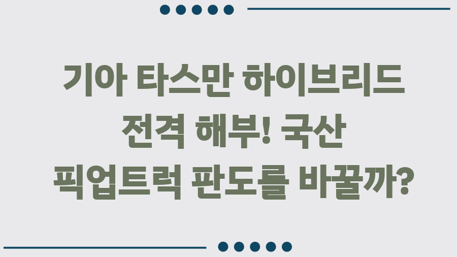 기아 타스만 하이브리드, 베일에 싸인 그 모습을 파헤쳐 봅니다! 최근 도로 위에서 포착된 기아 타스만 하이브리드 프로토타입!국산 픽업트럭 시장에 새로운 바람을 불러일으킬 주역으로 기대를 모으고 있는데요.과연 타스만 하이브리드는 어떤 매력을 숨기고 있을까요? 지금부터 함께 샅샅이 파헤쳐 보겠습니다! 타스만 하이브리드, 숨겨진 매력을 찾아서기아 타스만은 기아의 첫 픽업트럭 모델이라는 점에서 출시 전부터 뜨거운 관심을 받고 있습니다.특히 최근 하이브리드 버전의 프로토타입이 포착되면서,연비 효율성과 친환경성에 대한 기대감이 더욱 커지고 있는데요. 그렇다면, 타스만 하이브리드는 과연 어떤 특징을 가지고 있을까요? 이번에 포착된 타스만 하이브리드는 힐러티비 채널을 통해 처음 공개되었는데요.외관상으로는 기존 모델과 ..
