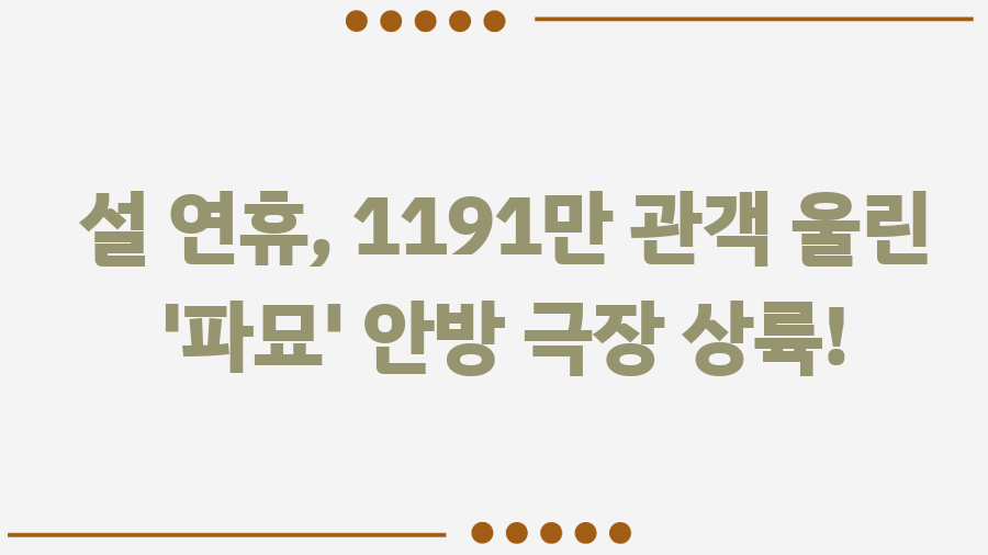 설 연휴, 안방 극장을 강타할 오컬트 미스터리 '파묘' 설 연휴, 가족들과 함께 TV 앞에 둘러앉아 어떤 영화를 볼까 고민이신가요?그렇다면 2024년 극장가를 뜨겁게 달궜던 오컬트 미스터리 영화 **'파묘'**를 강력 추천합니다!1191만 관객을 사로잡았던 이 영화가 2025년 설 연휴, KBS2TV를 통해 여러분의 안방을 찾아갑니다.최민식, 김고은, 유해진, 이도현 등 대한민국 대표 연기파 배우들의 열연과 긴장감 넘치는 스토리가 당신의 설 연휴를 더욱 특별하게 만들어 줄 것입니다. 수상한 묘, 그 뒤에 숨겨진 진실은?영화 '파묘'는 단순한 공포 영화를 넘어 인간의 욕망과 금기를 다루며,한국적인 오컬트 요소와 일본의 신화적 요소를 결합한 독특한 작품입니다.이야기는 미국 LA에서 시작됩니다.무당 화림(김고..