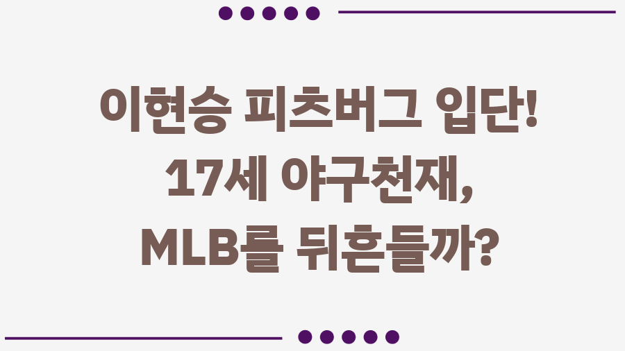 꿈을 향해 거침없이! 17세 이현승, 피츠버그 파이어리츠와 마이너리그 계약 체결! 혹시 야구 좋아하세요?대한민국 야구 꿈나무, 이현승 선수가 메이저리그를 향한 첫 발을 내딛었습니다! 17세의 어린 나이에 피츠버그 파이어리츠와 계약을맺었다는 훈훈한 소식인데요.클럽 야구팀에서 실력을 갈고닦아 MLB의 꿈을이룬 그의 스토리를 함께 알아볼까요? 꿈을 향한 특별한 선택, 고교 진학 대신 MLB!이현승 선수는 남들과 조금 다른 길을 걸어왔습니다.중학교 졸업 후 고등학교 진학 대신 개인 훈련을선택한 것이죠.이는 오로지 메이저리거라는 꿈을 향해 집중하기위한 결정이었습니다. 학교 야구부가 아닌 클럽팀에서 실력을 키워왔다는점도 눈에 띄는데요.그의 재능을 알아본 피츠버그는 16만 달러의계약금을 제시하며 그의 가능성에 투자했..