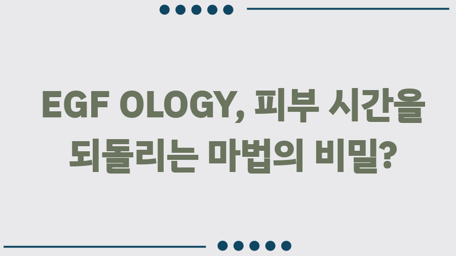 피부 시간을 되돌리는 마법, EGF OLOGY의 세계로! 혹시 거울을 볼 때마다 늘어나는 주름, 칙칙한 피부톤 때문에 고민이신가요?마치 시간이 멈춘 듯, 젊고 건강한 피부를 되찾고 싶은 마음은 누구나 같을 텐데요.오늘, 피부 과학의 혁신이라 불리는 EGF(Epidermal Growth Factor, 상피세포 성장인자)를 핵심 성분으로 하는 EGF OLOGY에 대해 속속들이 파헤쳐 보겠습니다.피부 노화의 시계를 멈추고, 피부 본연의 아름다움을 되찾는 비법을 지금부터 알아볼까요? T-EGF 포뮬라, 피부에 젊음을 되돌려주다EGF OLOGY의 핵심은 바로 독자적인 바이오 기술 포뮬라, T-EGF입니다.T-EGF는 피부 탄력을 높이고, 주름을 옅게 하며, 피부 결을 개선하여 마치 피부 시간을 되돌리는 듯한 효과..