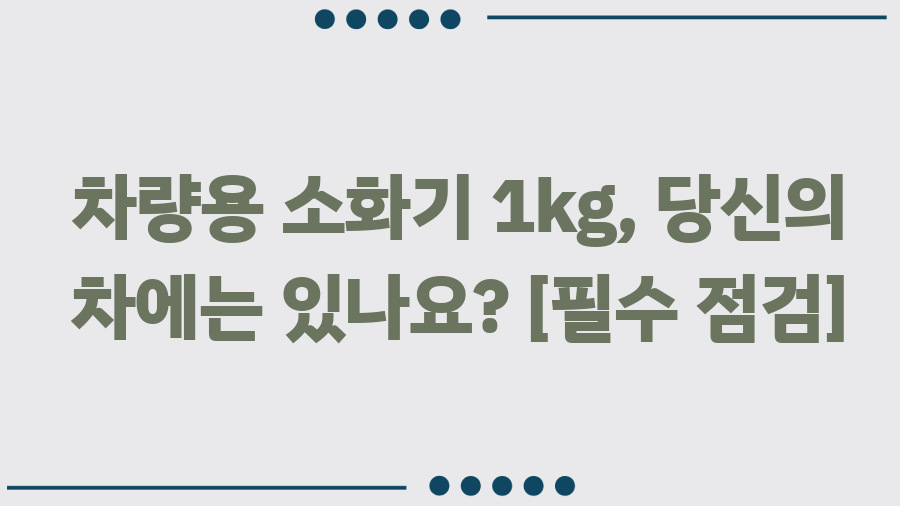 차량 화재, 설마 나에게도? 미리 준비하는 차량용 소화기! 혹시 "나에게는 절대 일어날 일 없어"라고 생각하고 계신가요? 예상치 못한 차량 화재는 누구에게나 일어날 수 있습니다. 특히, 좁은 공간에서 빠르게 번지는 불길은 초기 진압이 무엇보다 중요하죠.오늘은 내 차와 내 가족을 지키는 필수품, 차량용 소화기 1kg에 대해 자세히 알아보겠습니다. 어떤 제품을 골라야 할지, 어디서 구매해야 합리적인지, 지금부터 꼼꼼하게 파헤쳐 볼까요? 차량 화재, 초기 진압의 중요성차량 화재는 순식간에 차량 전체를 덮을 수 있습니다. 초기 진압에 실패하면 큰 인명 피해로 이어질 수 있기 때문에, 차량용 소화기는 선택이 아닌 필수입니다. 특히 1kg 소화기는 휴대성이 좋고, 초기 화재 진압에 효과적인 용량으로 많은 운전자들이..