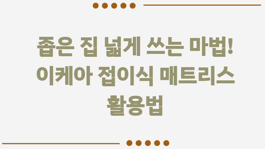 좁은 공간, 넓게 쓰는 마법! 이케아 접이식 매트리스로 공간 활용 끝판왕 되기 집 꾸미기에 진심인 여러분, 좁은 공간 때문에 답답함을 느낀 적 있으신가요? 특히 아이들 방이나 손님방은 공간 활용이 더욱 중요하죠. 이럴 때 이케아 접이식 매트리스는 마법 같은 해결책이 될 수 있습니다.오늘은 이케아의 다양한 접이식 매트리스를 낱낱이 파헤쳐 보고, 여러분의 공간 활용 고민을 시원하게 날려줄 꿀팁들을 소개해 드릴게요! 아이들의 에너지 발산을 위한 선택, 이케아 접이식 놀이 매트아이들은 쉴 새 없이 뛰어놀고 싶어 하죠. 하지만 집 안에서 마음껏 뛰어놀게 하자니 안전이 걱정되기도 합니다.이럴 때 이케아의 접이식 놀이 매트가 해답이 될 수 있습니다. PASSBIT 파스비트는 걸음마를 배우는 아기부터 활동량이 많은 아..